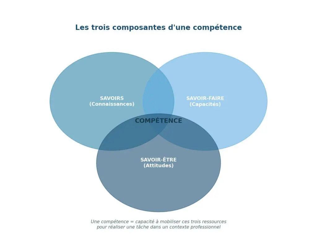 Une compétence se définit comme la capacité à mobiliser un ensemble de ressources (connaissances, capacités, attitudes) pour réaliser une tâche ou une activité dans un contexte professionnel donné. Cette définition holistique intègre à la fois la dimension cognitive, pratique et éthique de l’apprentissage.